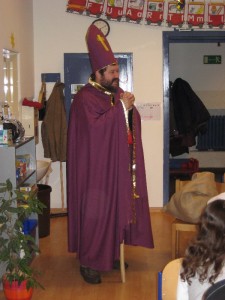 Er erzählte uns die Geschichte vom Bischof Nikolaus, der vor etwa 1700 Jahren in der Stadt Myra, in der heutigen Türkei, gelebt hat. Zum Schluss überreichte der Nikolaus jedem Kind noch ein kleines Geschenk…