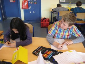 Das war manchmal gar nicht so einfach, aber es brachte großen Spaß! Anschließend stellten wir unsere Geschichten vor und bekamen von Frau Franz viel Lob und hilfreiche Tipps.